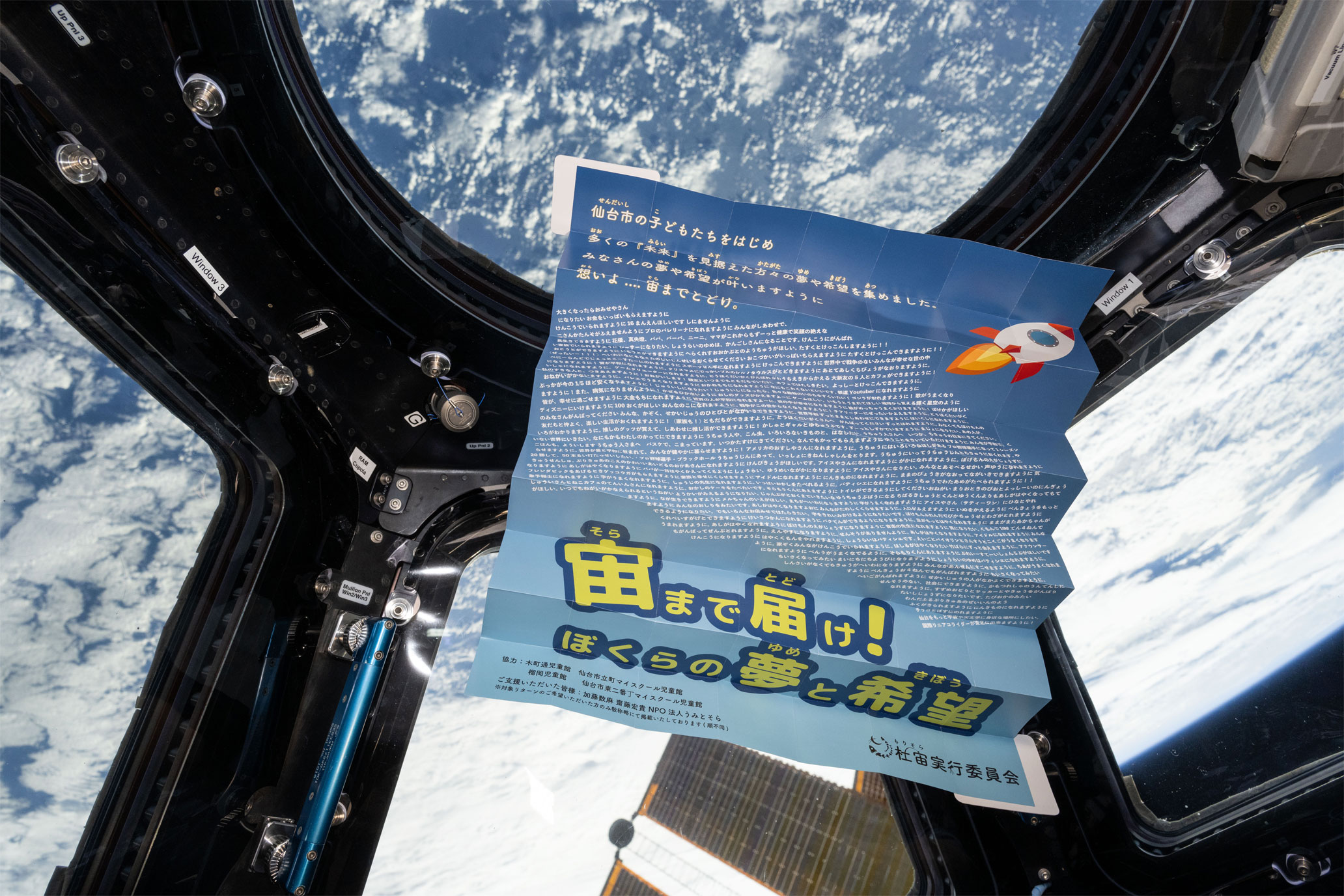 なおポスター9枚の内訳は、子どもミッション、成田市、日進市、大和郡山市、狭山市、筑西市、さらに東北大学・杜宙実行委員会、一般財団法人ワンアース、ローランドコーポレーションからとなります。